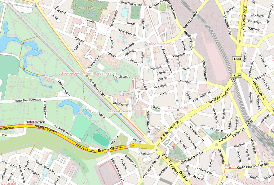 In der direkten Umgebung finden Sie beliebte Touristenattraktionen wie etwa Welfenschloss, Marstall beim Welfenschloss sowie Schloss Monbrillant. Beliebt sind auch folgende Stadtpläne: Marktkirche , Hochschule Hannover, Aegidienkirche und Neustädter Markt